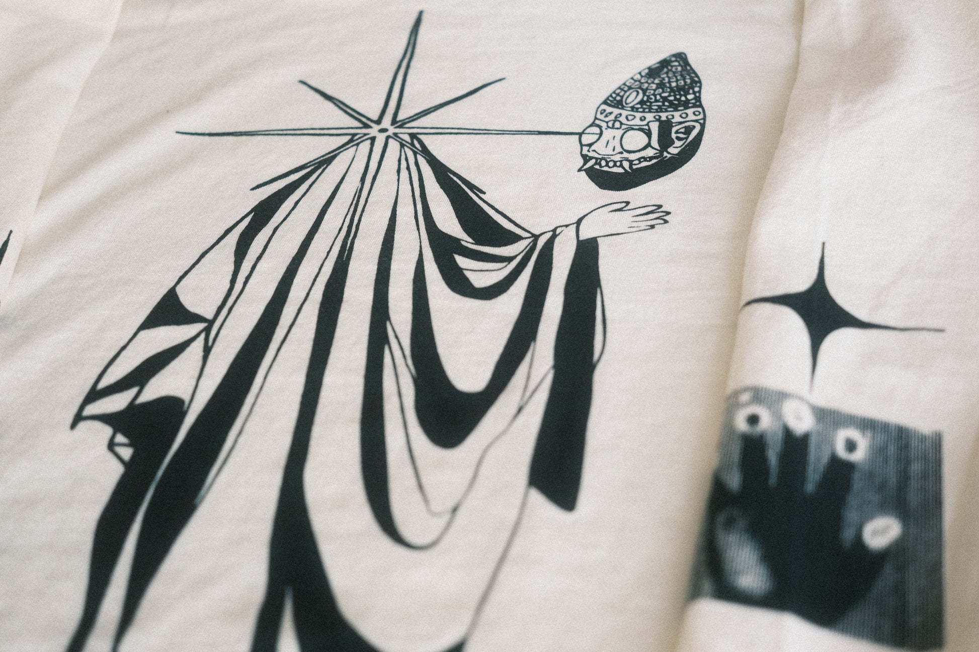 Screen printed by hand on an ivory 100% cotton long sleeve